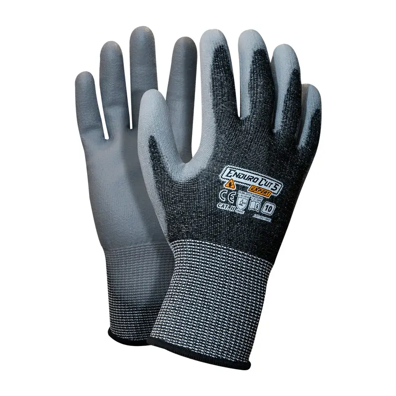 Mănușile ENDURO CUT XD EXPERT sunt realizate din HPPE și nylon, cu suprafață interioară acoperită cu poliuretan gri, oferind rezistență ridicată la tăieturi, abraziune și rupere. Confortabile și flexibile, protejează mâinile în orice activitate industrială sau mecanică.